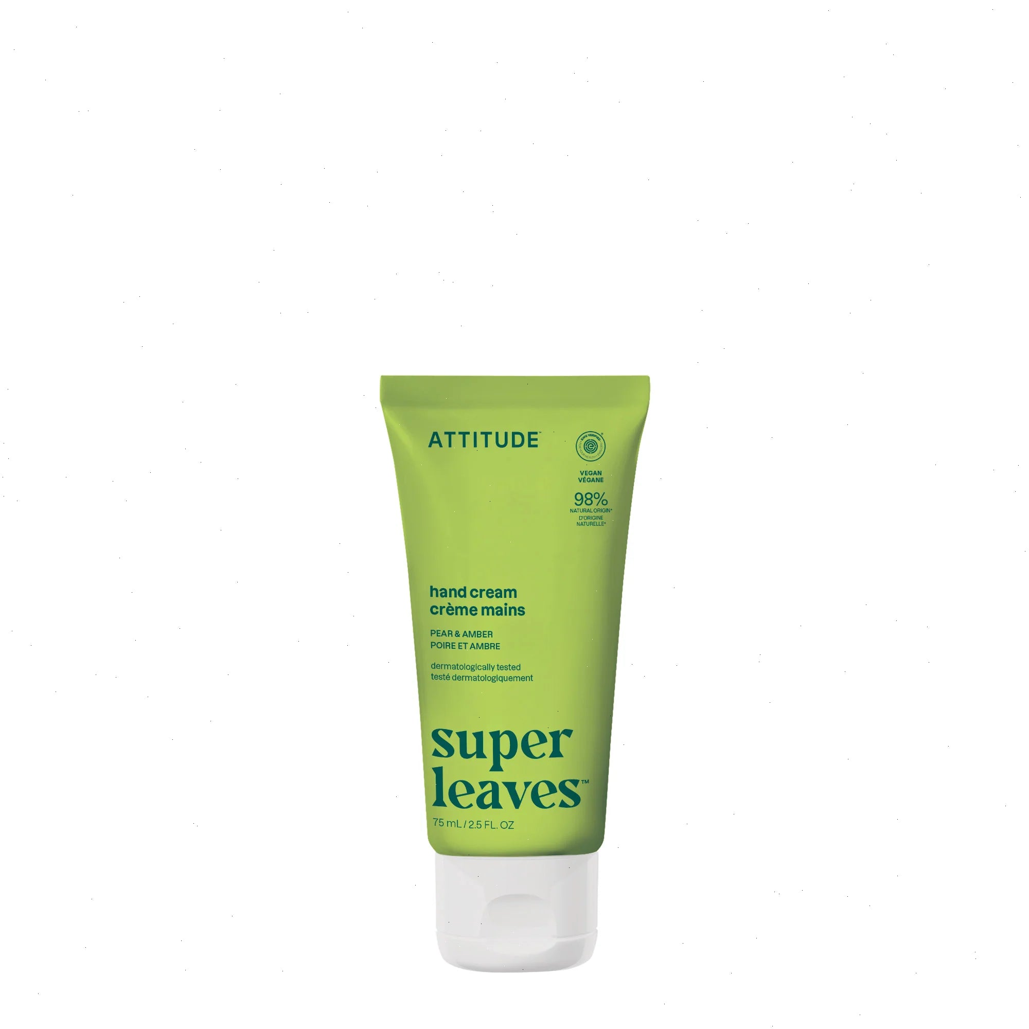 Our Super Leaves hand cream formula is enriched with shea butter to nourish and soothe dry skin. With pear and amber fragrance to soothe skin and keep it healthy. EWG VERIFIED™ and dermatologically tested, this essential vegan cream contains vitamin and mineral-rich Indian cress and watercress to revitalize skin. Infused with a warm fragrance with notes of sweet pear and rich amber, its lightweight and non-greasy texture provides your hands with daily nourishment. Apply it any time thanks to its easy-to-carry format!