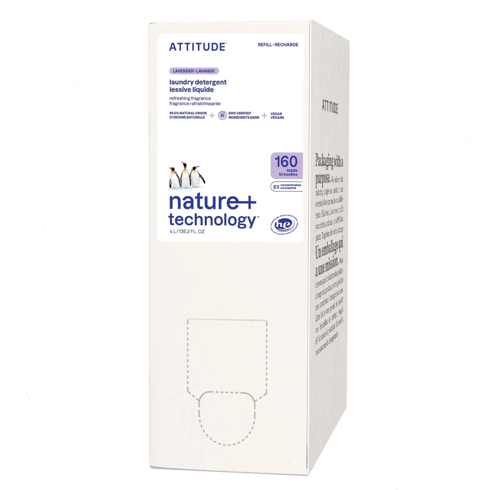 Formulated with 98% naturally derived ingredients, ATTITUDE™ laundry detergent packs excellent detergent power and is free of enzymes. Its comforting aromatic blend of lavender and herbs is complemented by warm, wooded notes. Its concentrated formula allows you to do more loads while using the same amount of detergent. Our laundry detergent is effective for cold water wash, saving you energy. Its vegan formula is certified by PETA and is offered in a 4 L eco-refill format that’s easy to use at home.